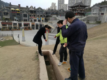 图为:中心工作人员再次建议时光贵州在二期雨水沟进入初期雨水收集池的进水口处加格栅用于拦截垃圾。